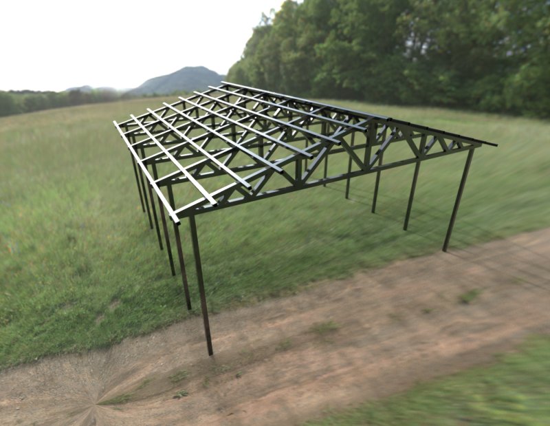 Установите стропильные системы на верхние части центральных и боковых опор. Стропила должны быть надежно закреплены и выровнены по уровню. Проверьте углы наклона стропил, чтобы обеспечить правильный сток воды и снеговых масс. При необходимости установите дополнительные элементы усиления (прогоны, подкосы) для повышения прочности и устойчивости конструкции.